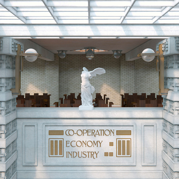 3D visualizations of the Larkin Administration Building, Buffalo, USA. Photos © David Romero