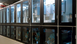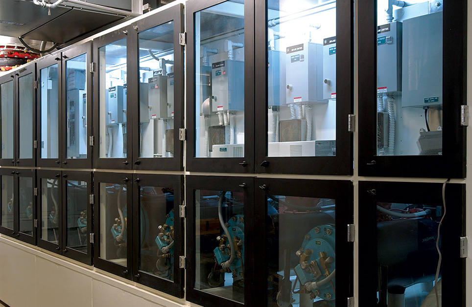 One of the first issues to address was solar heat gain. Both passive and active design techniques proved helpful on this account. The tower’s north-south orientation and its gently curving form, with its narrow edges facing east and west where solar heat gain is greatest, mitigates the impact of the sun; a special reflective glass that clads the tower also helps in this regard. The engineering solution was necessarily more complicated. It began with a close analysis of the building’s materials using thermal modeling software, which helped engineers determine the precise cooling requirements and the means to attain them.