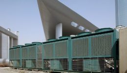 The Kingdom Centre’s MEP system involves a central chilled water plant, supported by a thermal energy storage (T.E.S.) system, that provides more than 5,000 tons of cooling capacity to the development —enough to cool about 1,200 houses in Riyadh. The central cooling plant design is composed of electric centrifugal chillers with radiators that reject heat to the atmosphere. The T.E.S. system stores cooling energy generated by the chillers during the night when demand is lowest and releases this energy to provide cooling to the building during the four-hour daily peak period when use of the electrically-driven chillers is restricted, thereby reducing peak load on the city-wide electrical power grid and limiting the project’s energy consumption.