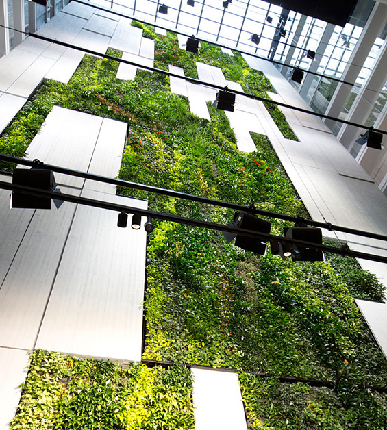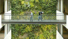 Constructing and successfully maintaining green walls is neither easy nor inexpensive, but an increasing number of building owners are nevertheless starting to see them as a worthwhile investment. Of course, it takes no special technical knowledge to appreciate green walls’ aesthetic appeal. These wonders of horticulture and architecture have the power to transform even a bland, ordinary space into a wonderfully inviting vertical garden, giving new meaning to the word “wallscape.” Architects are beginning to learn to use living walls not just to make a statement, but toenhance livability, occupant quality-of-life, and energy performance— and in some cases, to humanize an otherwise uninviting environment. In our cities that too often seem detached from nature, green walls can play a meaningful, even poetic role in bringing us back into balance.