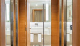 Inside the new Radisson Blu Hotel & Residence, guests can enjoy world-class sophistication and comfort with a hint of local flavor. The 110 elegantly designed rooms and suites, designed by Omrania with SC.Design, offer a chic contemporary sensibility accentuated by a curated selection of artworks by Saudi artists. Natural materials such as wood, glass, and stone are overlayed with contemporary textiles in neutral tones. The lighting concept combines gentle ambient cove lighting—including innovative circular light coves in the bedrooms— with designer pendants and minimalist downlights in the living areas. Many of the rooms open graciously to a private balcony or a garden-facing terrace shaded by the building’s innovative terra cotta layered envelope system.