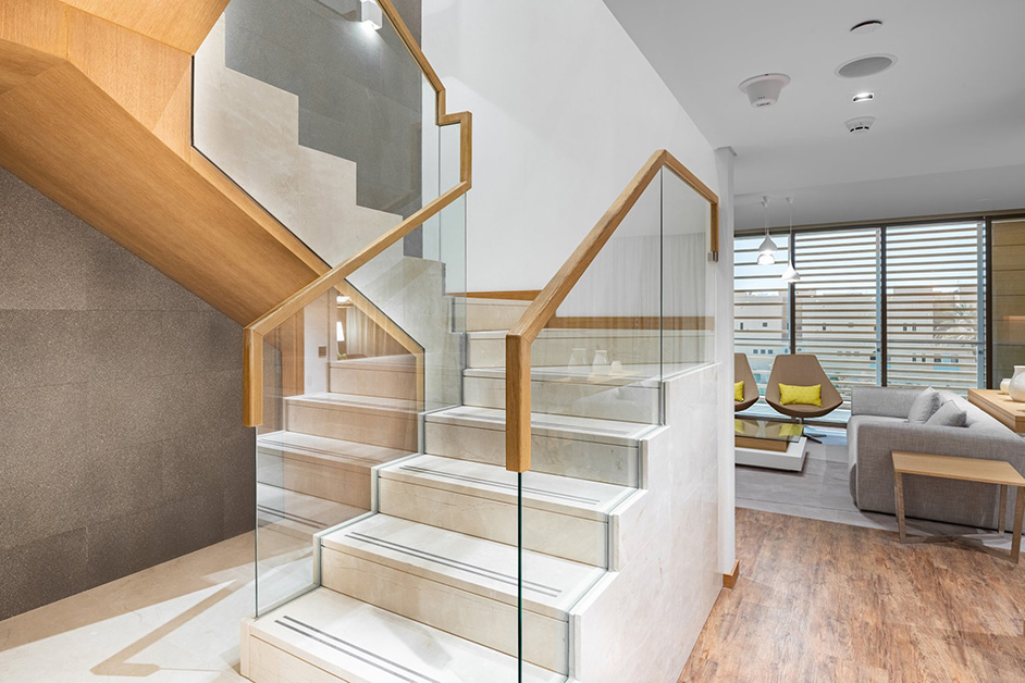 The Radisson Blu Hotel & Residence features contemporary interiors with natural materials, designer lighting, and Middle Eastern artwork. Photos © Radisson Blu