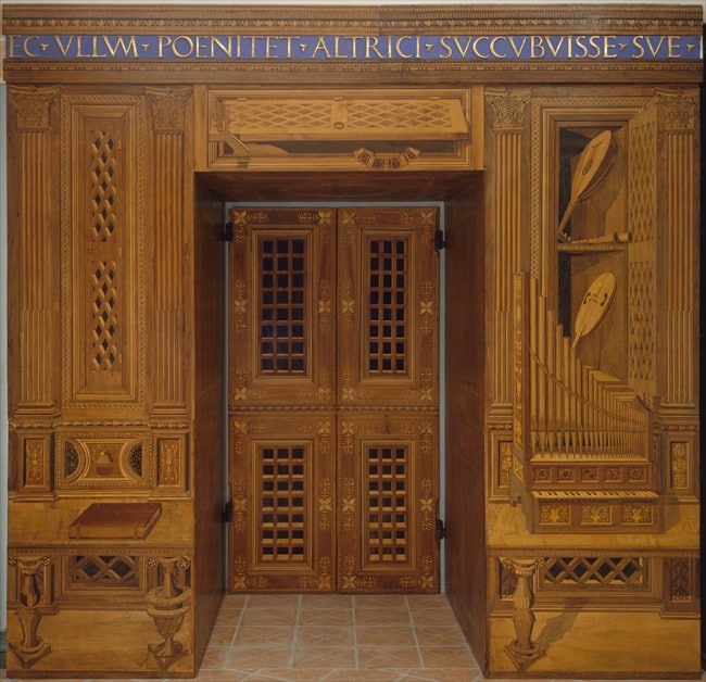 Studiolo from the Ducal Palace in Gubbio, Italy. Photo © Public Domain