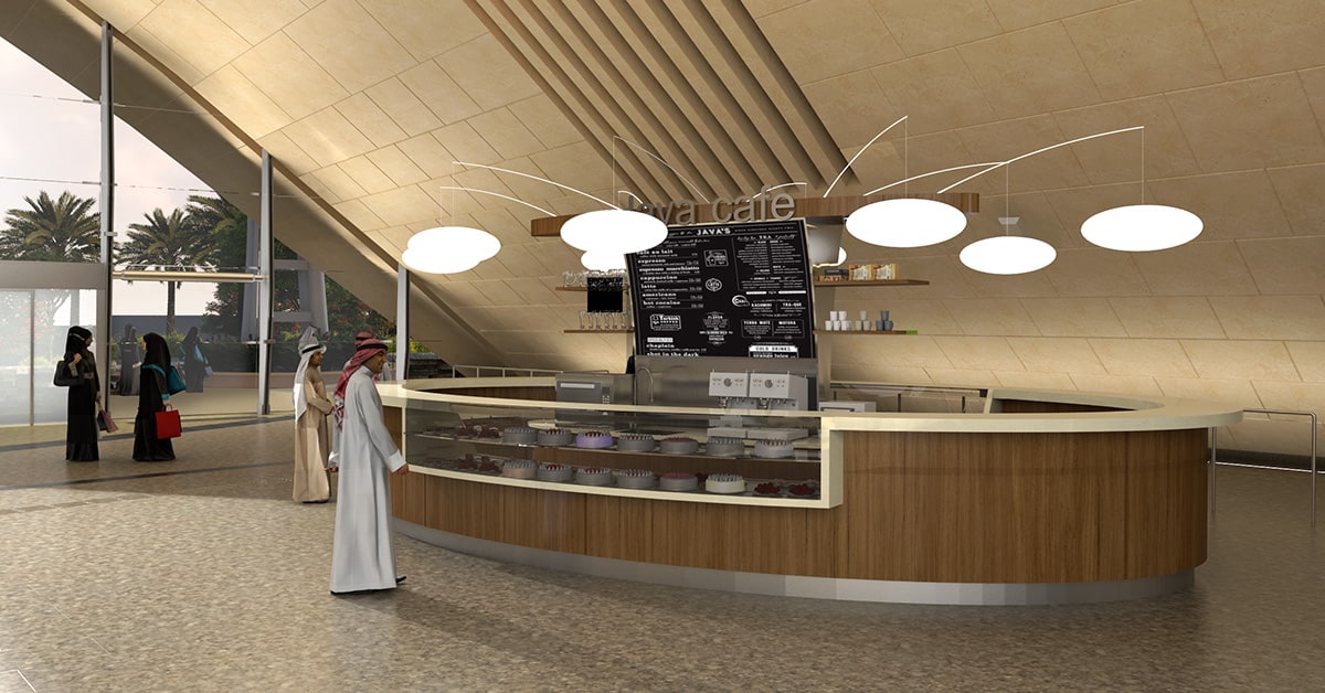 Navigating the 40,000-square-meter station will be convenient and enjoyable. The spacious, column-free structure permits open circulation and excellent sightlines throughout the main halls. Omrania conducted advanced simulations to study optimal circulation patterns and crowd movement, ensuring smooth traffic flow. The space planning and interior design help commuters easily reach clearly marked and differentiated areas for ticketing, boarding, parking, and on-site services. Several cozy café stations in both the metro and bus station areas bring the vast hall down to a human scale, and invite commuters and visitors to relax.