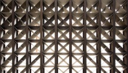 The design expresses a modernist sensibility and illustrates the versatility of locally produced concrete, with reinforced concrete structural framing, poured-in-place concrete forms, and precast concrete panels, including rough-hewn panels that give the facade a depth and dynamism as it changes with the movement of the sun.