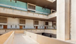 The GOSI Housing and Commercial Center was completed in 1984, during a period of unprecedented growth in Riyadh that saw a massive government investment in infrastructure and architecture. Like Omrania’s seminal project for the GOSI Headquarters, located just a few blocks away, the 37,000-square-meter development is characterized by bold, sand-colored concrete volumes that reflect the climate and culture of Riyadh.