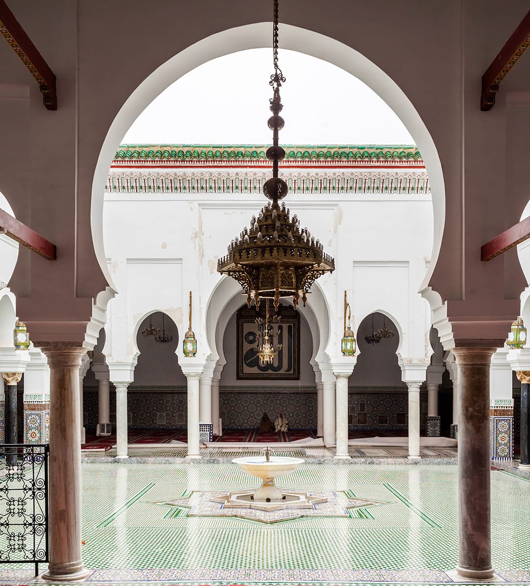 A masterpiece of Moorish architecture in the historic quarter of Fez, Morocco, the Al-Qaraouiyine Mosque was rehabilitated 2004–2007 by a team lead by architect Mohammed Fikri Benabdallah. Photo © saiko3p.