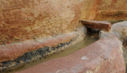 The slope of this pipeline consistently follows the very significant angle of approximately two degrees, which, according to the latest peer-reviewed research by Dr. Charles Ortloff of University of Chicago, maximizes flow rate for this specific pipeline. Deviation of even a single degree would cause a decrease in flow rate and frequent leakage. (For other supply lines, such as that along the Wadi Mousa, the optimal angle was four degrees.) How the Nabataeans had this knowledge baffles modern historians and engineers, as calculating this precise angle requires mathematics not developed in the west until nearly 2,000 years later. Petra’s water system also included hundreds of cisterns and tanks for water purification and pressurization.