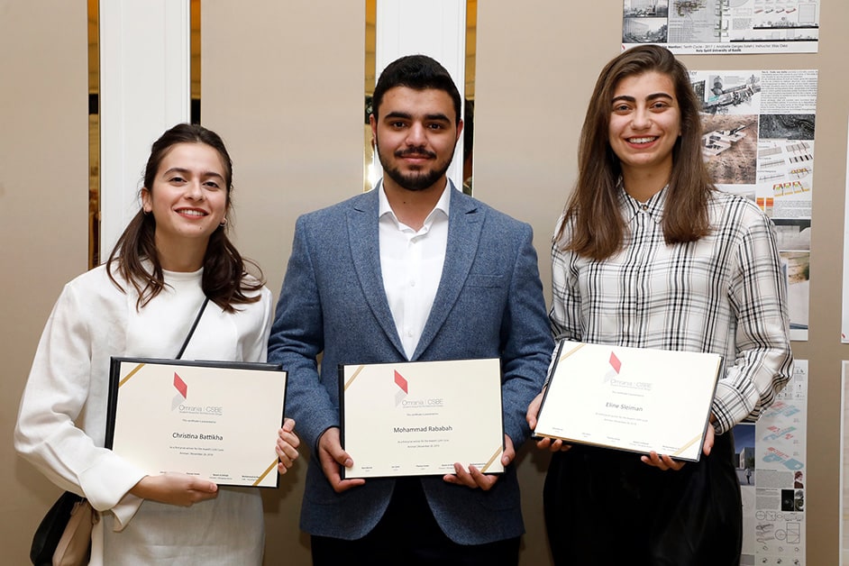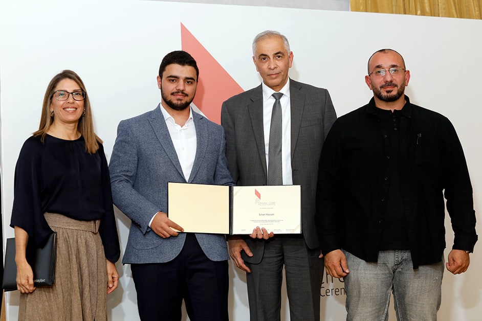 The Award ceremony took place on November 26, 2019 at the Fairmont Amman Hotel. The ceremony included welcoming remarks followed by a presentation by Saleem Dahabreh, Associate Professor, Department of Architectural Engineering, The University of Jordan, who supervised one of the winning projects. The Award recipients then presented their projects to the audience, and then received their Award certificates, together with their instructors. The ceremony was followed by a reception and an exhibition featuring the submissions for this Award cycle and the winning projects from all past cycles.