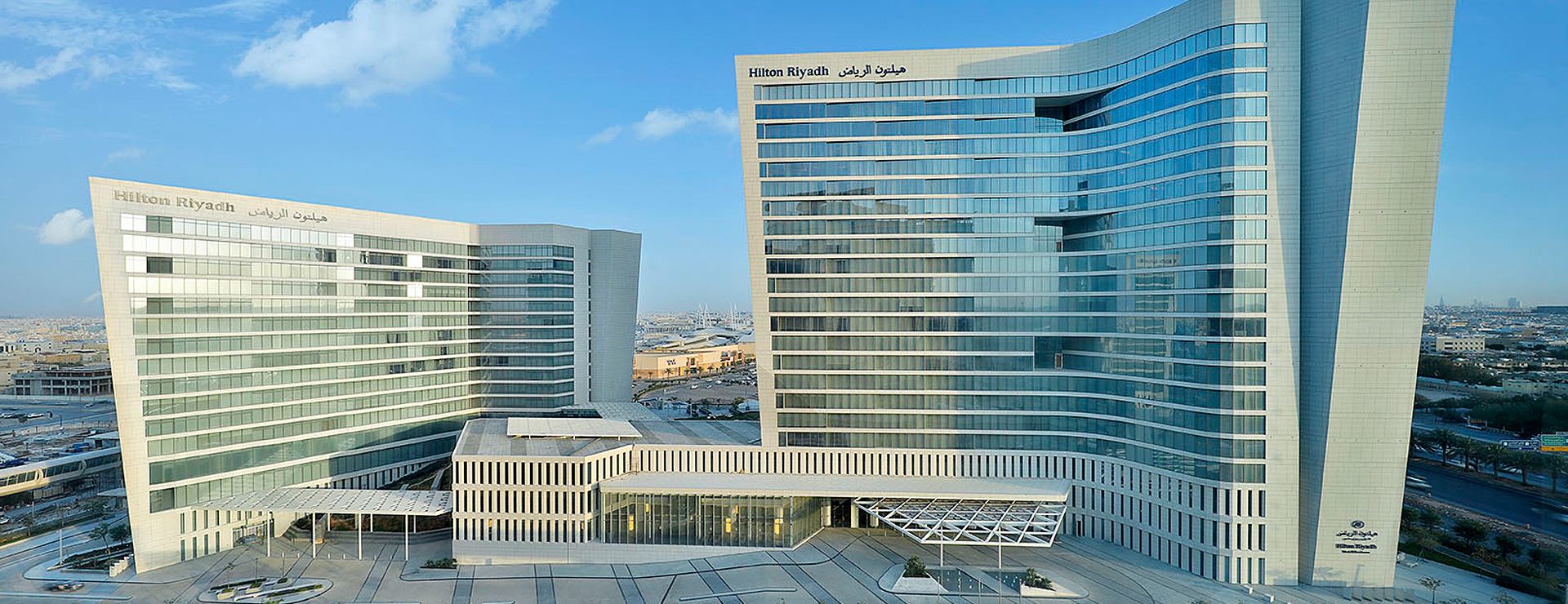 The 5-star Hilton Hotel and Furnished Apartment building in Riyadh has become a truly artistic and beautiful landmark within the capital city of Saudi Arabia.