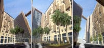 Three “Four Star” Hotels: Occupy the northern and western elevations of the site. Two of these constitute a separate block located at the western edge of the site and are organized around an internal court. These two hotels (H4 & H5) are similarly proportioned with 598 bedrooms for H1 & 612 bedrooms for H5, while the third hotel (H3) has 525 bedrooms.
