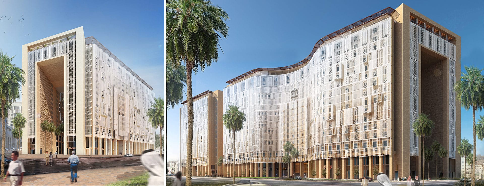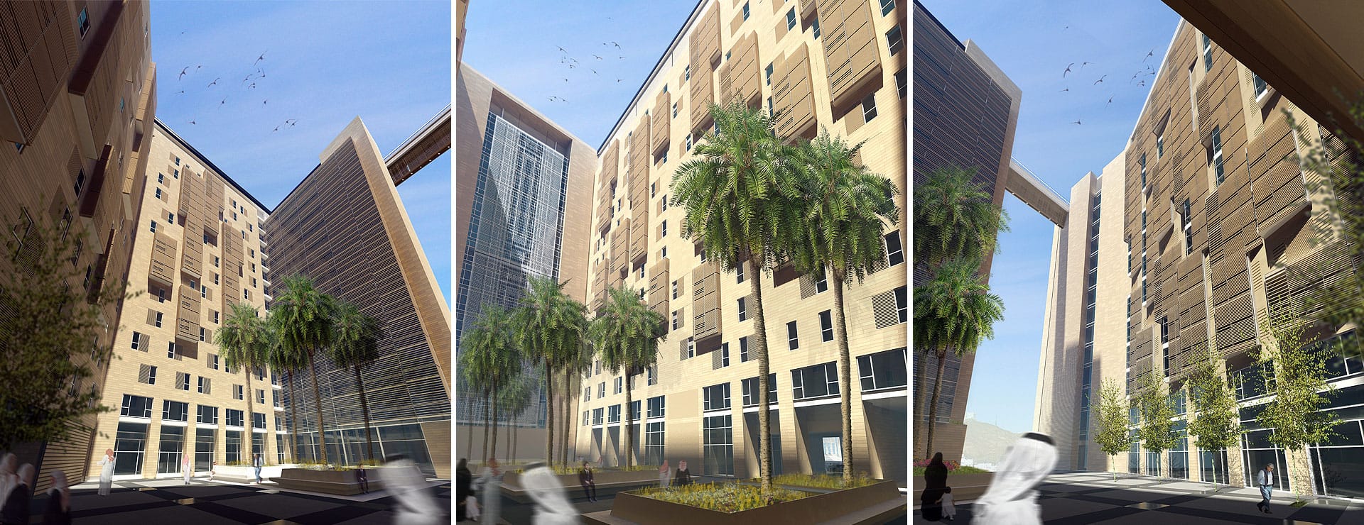 Two goals drive the design of the complex. Firstly, the need to provide a direct visual relationship with, and a connection to, Al-Haram Mosque. Secondly, the need to enhance the commercial value of the project while addressing the human scale within this high-rise development by planning the development around a series of courtyards. With this in mind, the design team strived to reach this delicate balance between both; the investment business case and the human experience through out the development.