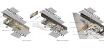 The design involves a series of heavy walls that rise out of the ground and contrast with a rhythm of “light” boxes that contain the functions of the building. The interplay between tradition and modernity plays itself out in this relationship between the rough walls and the intricate habitable spaces.