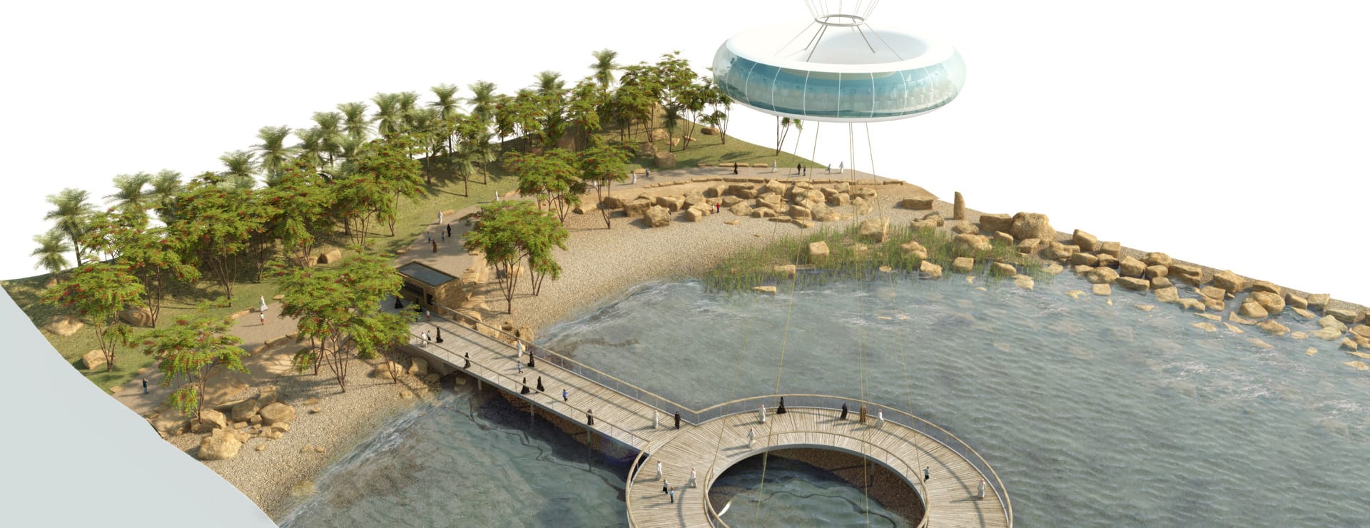 The park provides numerous opportunities for views, with the Uplands area, 100 metres high on the adjacent escarpment, not only supplying scenic views across the entire park, but also providing a clear boundary between the park and the proposed Urban Extension. The Moon Balloon with its gondola provides a safe viewing platform across the park and city beyond and is permanently tethered to a jetty. The Pontoon cleverly disguises the pumps and pipe work needed for the recirculation of the River.