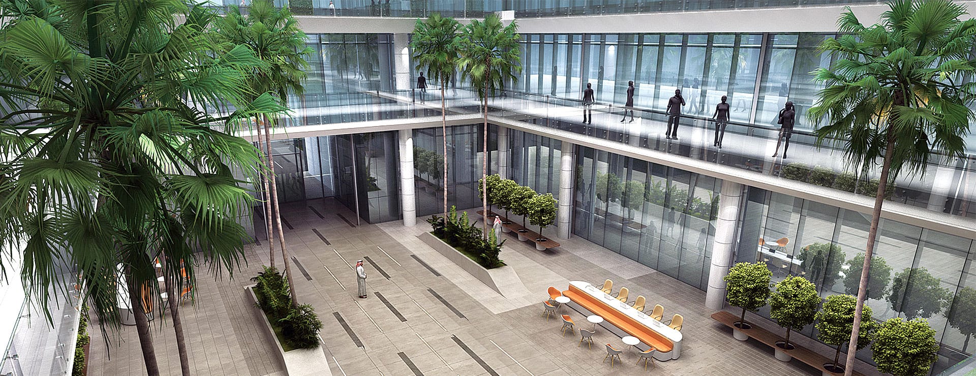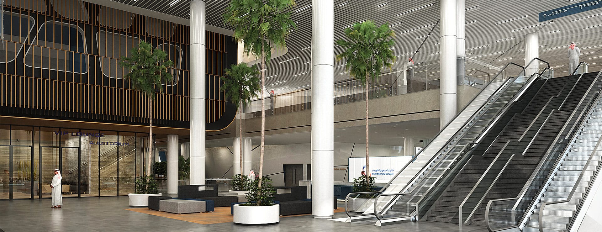 Images of the atriums in the new Saudi Electricity Company Headquarters