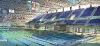 The highlight of these facilities were three pool complexes. These featured light weight roofs that covered up to 12,000 m2 of column free areas. The largest of these pool buildings contained a competitions pool, an exercise pool, and a diving pool all designed to Olympic standards. Also under the same roof was terraced seating for 3,000 spectators as well as