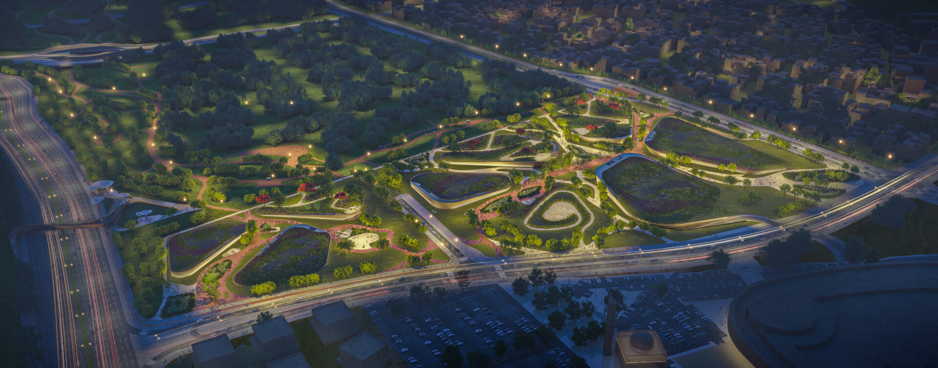 Omrania’s innovative design incorporates organically shaped storage tanks that are nestled within intentionally depressed green pathways. These pathways expose stone-clad external tank walls, creating a dynamic visual contrast with the surrounding greenery. The green roofing of the tanks extends the park’s natural landscape, promoting ecological balance and biodiversity.
